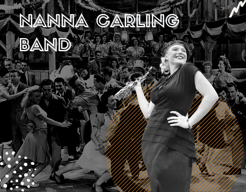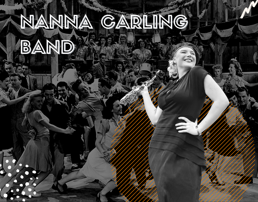 Med sprudlande energi och saxofonen i handen leder Nanna Carling sitt Swingband. Nanna Carling spelar musik djupt rotad i Duke Ellington, Fats Waller och Sidney Bechets repertoar och sprider alltid glädje vart hon än kommer. Hon har trots sina unga år uppträtt flitigt runt om i världen på platser som Birdland (NYC), The Rock that Swing festival, Tel Aviv Opera House, Seoul Lindy Fest och The Bangkok Big Bang Festival. Det blir het jazz och blå blues som tar en tillbaka i tiden!
