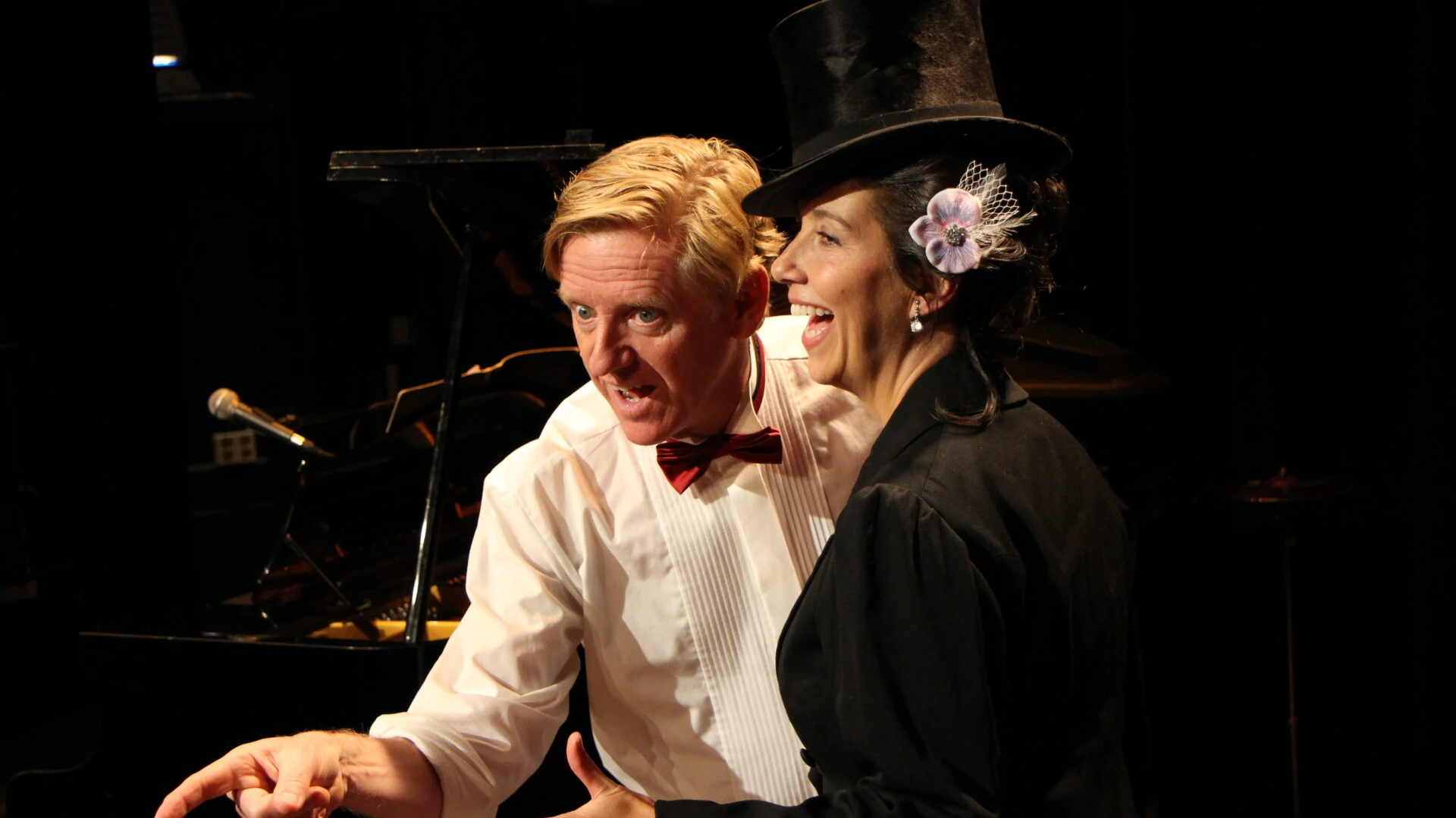Gunnar Åkerhielm, pianist, är en lekfull följeslagare på scen, som gärna sticker till publiken lite skvaller när tillfälle ges.